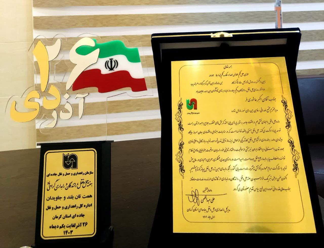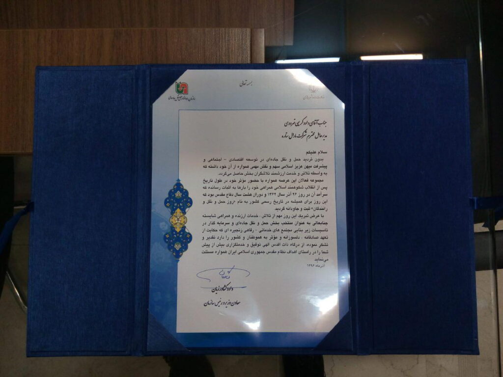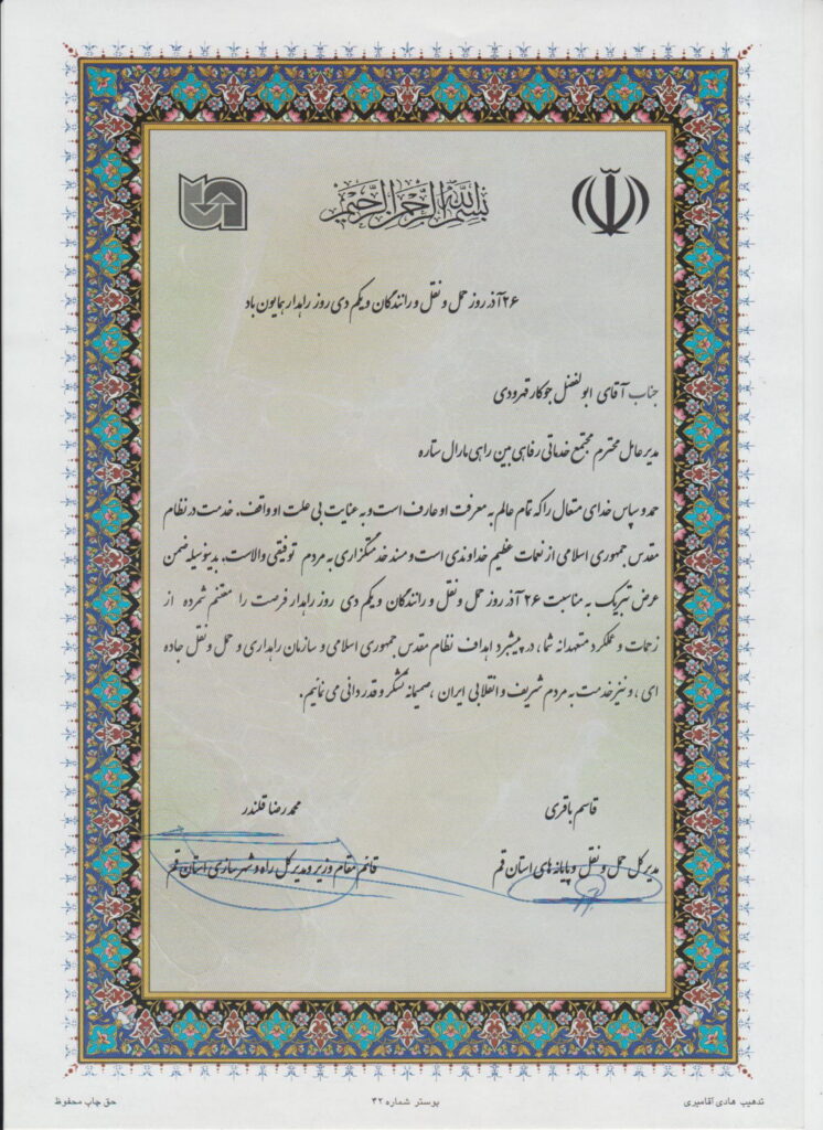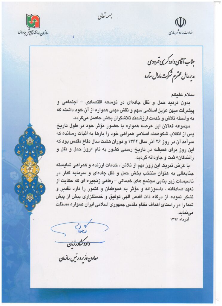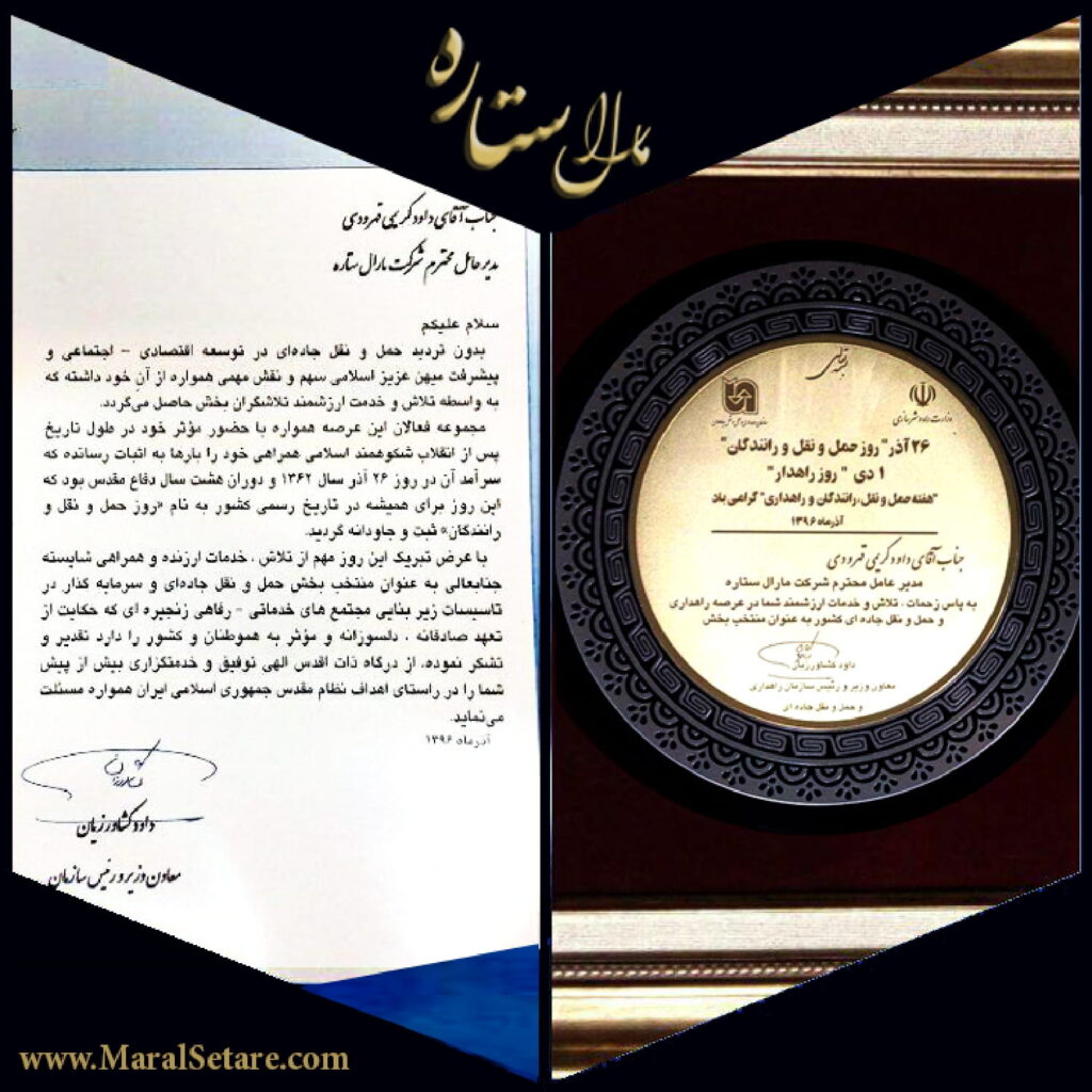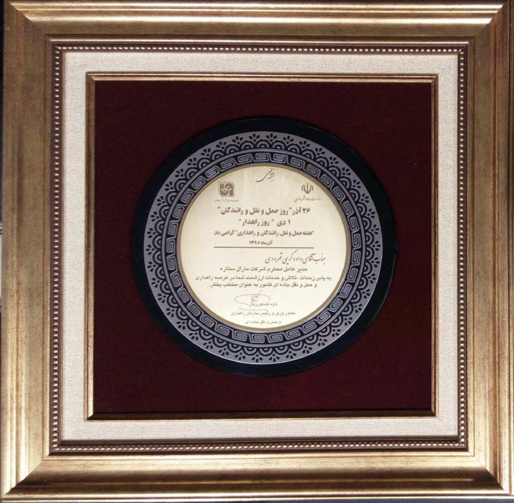 ♦ منتخب بخش بین راهی کشور از سوی سازمان راهداری و حمل و نقل جادهای.