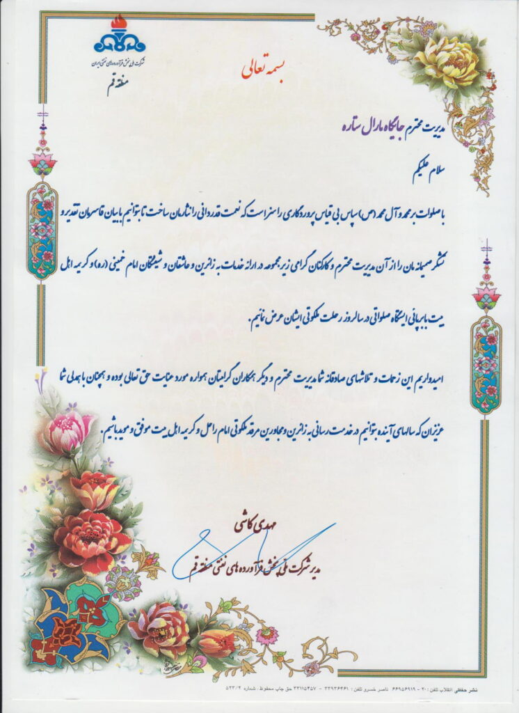 در طول این مدت، رضایتمندی مشتریان و میهمانان عزیز داخلی و خارجی که ما را در هدفمان مصمم تر نموده است.