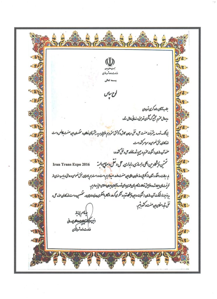 ♦ دارای گواهینامههای ایزو 2012، 2014،2015.
